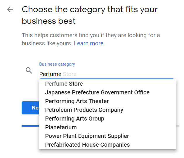 a) Set up a new Google Account: If you want to use any Google service—be it Gmail, Google Photos, Google Docs, or Google My Business—you need to have a Google account…that’s just the way it is. Fortunately getting one is free, and businesses just need to go here and click the “To manage a business” button. If you want to create a new Gmail address then your username can only contain letters, numbers, and periods, or you can choose to sign in with an existing personal or business email address. Use an email that you’ll have immediate access to, as you’ll be asked to log in and retrieve a security code. After being asked to provide a phone number, date of birth, and gender (and to agree to the ubiquitous terms and conditions), you can now start to build out your business profile and get noticed! b) Head to google.com/business: This area is your Google My Business gateway. You’ll be coming back to it regularly so take the time to save it as a bookmark, and when you’re ready click ‘Manage Now’. c) Enter your business name: If you have the same name as another business in your region, you’ll see the autocomplete function suggest those businesses for you. This is to allow you to see if your business listing already exists (to avoid accidental duplication) and to add a new GMB profile to an existing business if you’ve just opened a new location.