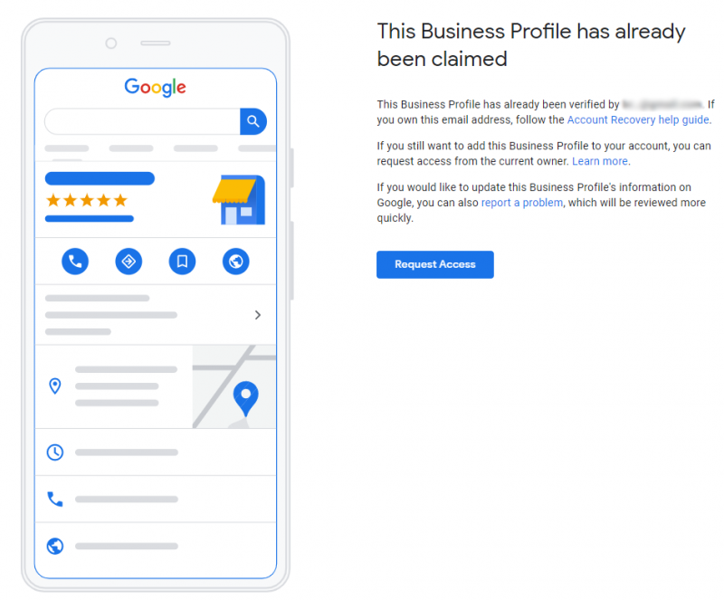 d) What to do if your business is already claimed : Click the “Request access” button and submit the form with as much detail as possible. You’ll receive a confirmation email of the request, and Google will contact the email currently associated with the business. Unfortunately, it’s then a case of wait-and-see for 7 days before you can reach out to Google Business Support.