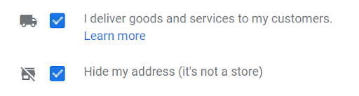 If you’re a Service Area Business that delivers goods and services to your customers, you’ll need to tick the box at the bottom of this form. SABs have two options here: